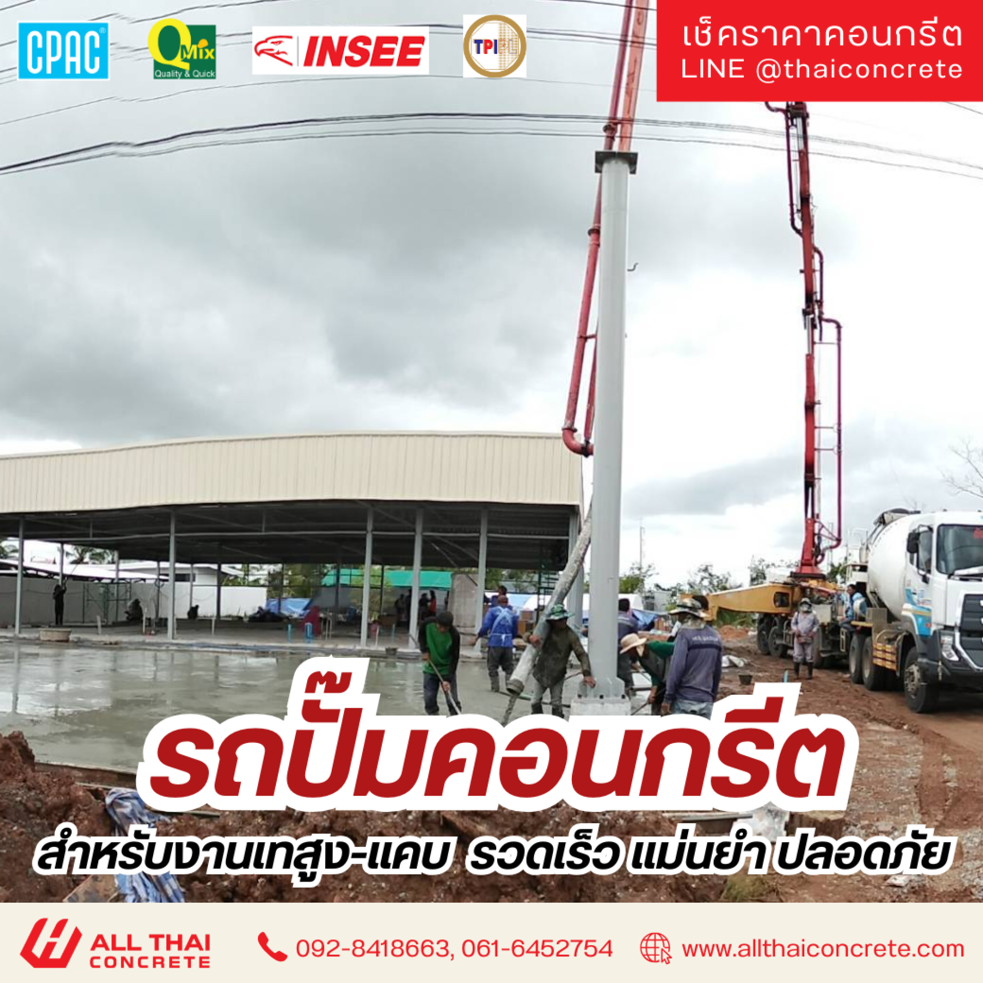 หากคุณกำลังมองหาคอนกรีตผสมเสร็จคุณภาพ ได้มาตรฐาน พร้อมรองรับงานก่อสร้างทุกรูปแบบ All Thai Concrete คืออีกหนึ่งทางเลือกที่ผู้รับเหมามืออาชีพไว้วางใจ พร้อมส่งตรงถึงหน้างานทั่วประเทศ